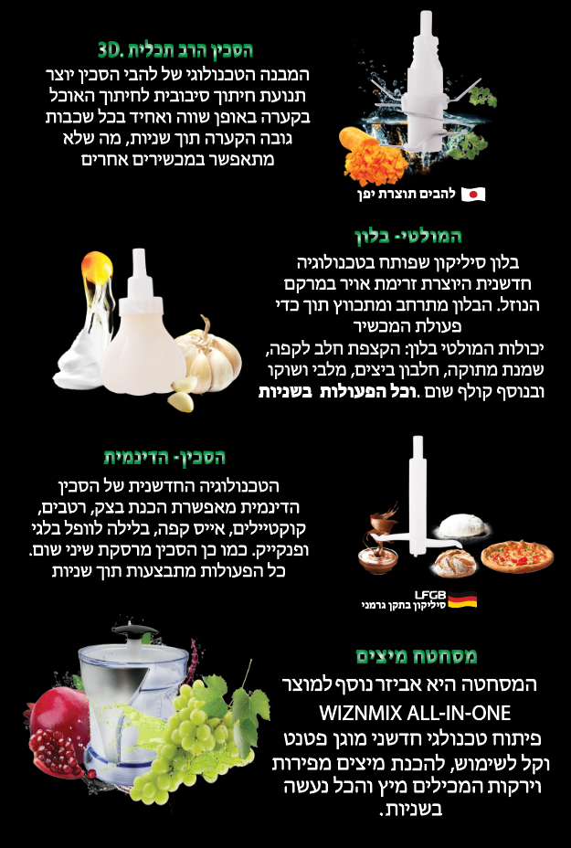 רק WIZNMIX All-In-One מחליף 13 מכשירים מטבח במכשיר 1!