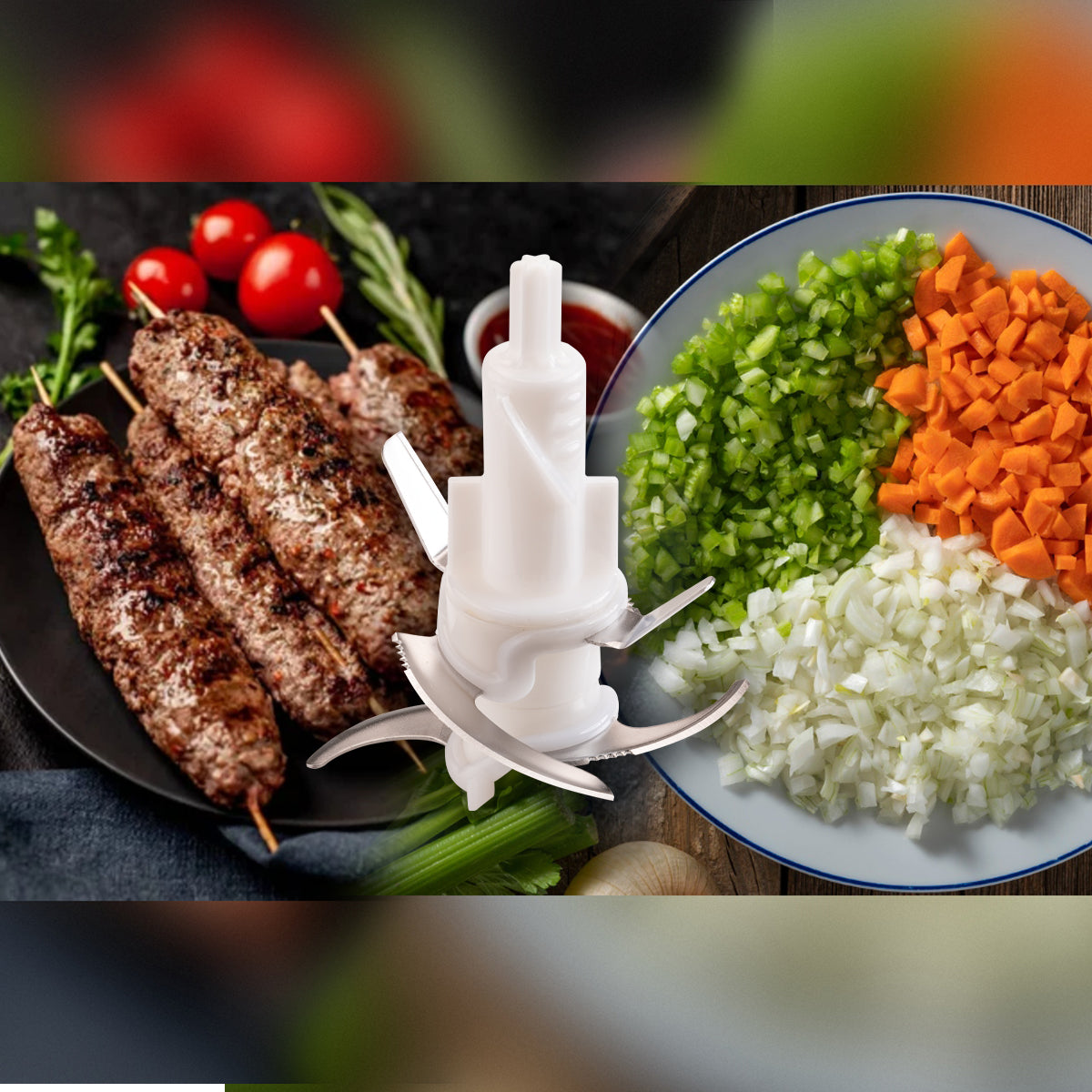 - המבנה הטכנולוגי של להבי הסכין הרשום כפטנט יוצר תנועת חיתוך סיבובית לחיתוך כל סוגי האוכל. המכשיר היחיד שקוצץ באופן אחיד ושווה, בכל שכבות גובה הקערה בשניות!